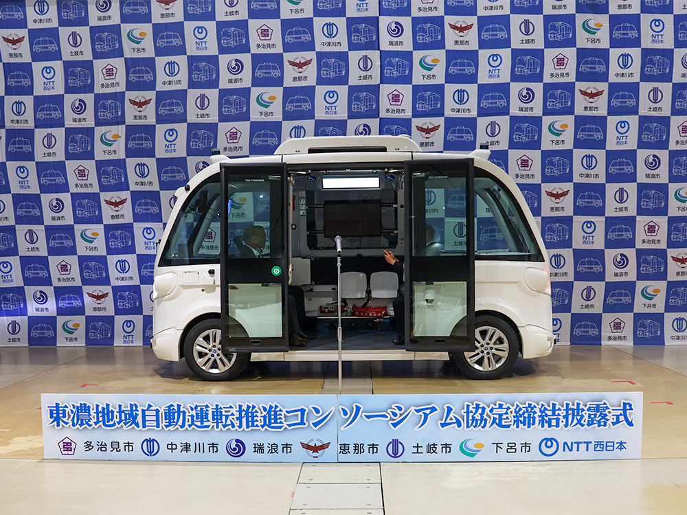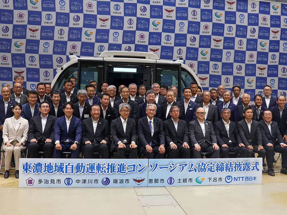 7月14日、岐阜県東濃地域および下呂市とNTT西日本株式会社岐阜支店は、「東濃地域自動運転推進コンソーシアム」協定を締結し、7月14日にセラミックパークMINO(多治見市)で協定締結披露式を開催しました。